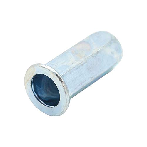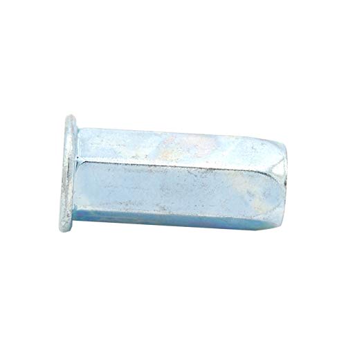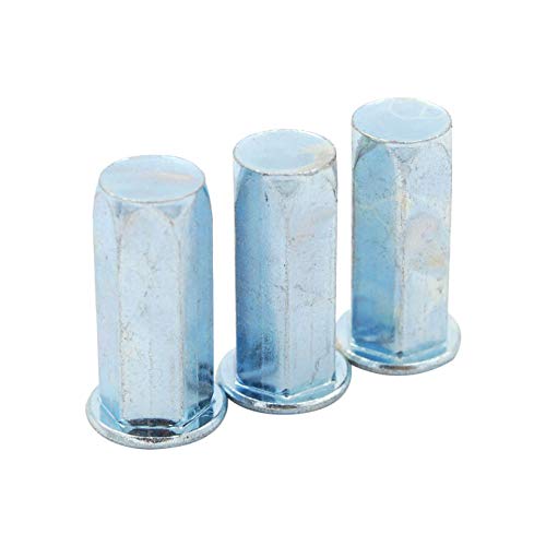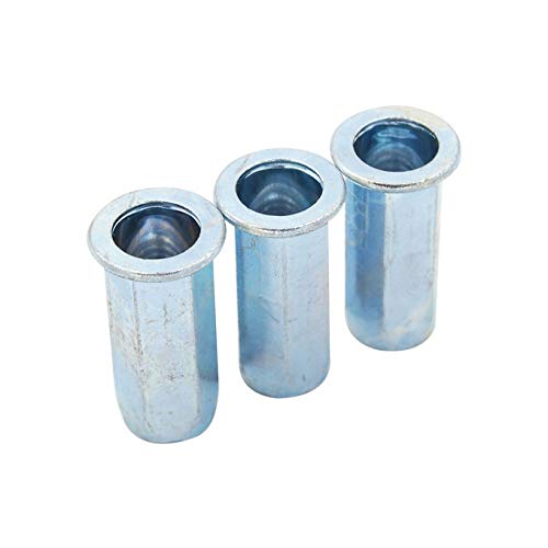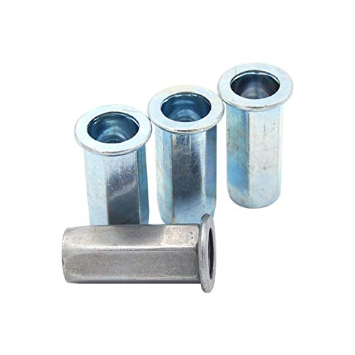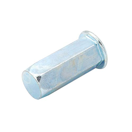 100pcs Flat Head Full Hex Close End Insert Rivet Nuts M3/M4/M5/M6/M8/M10/M12Specifications:Material: Carbon Steel, Zinc PlatedHead Type: Flat HeadRivet Nut Type: Close End Flat Head Full HexSize: M3 M4 M5 M6 M8 M10 M12Features:A Rivet Nut fastener is a tubular rivet with internal thread which can be installed in seconds form one side of the work. Once installed, no finishing work is required on the RIVNUT fastener.Rivet Nuts also are used when an application has little or no access to the backside as they can be installed from the front side of the work piece.The added benefit of not only being a dependable fastener, they are ready to use with clean threads available for screw attachments.Made of carbon steel, high-strength, load-bearing threads; with zinc plated finish,Rust and corrosion resistantSuitable occasions such as in medicine beverage food chemical industry, air conditioning, fire fighting, gas, etc.Package Content:100Pcs Rivet Nuts