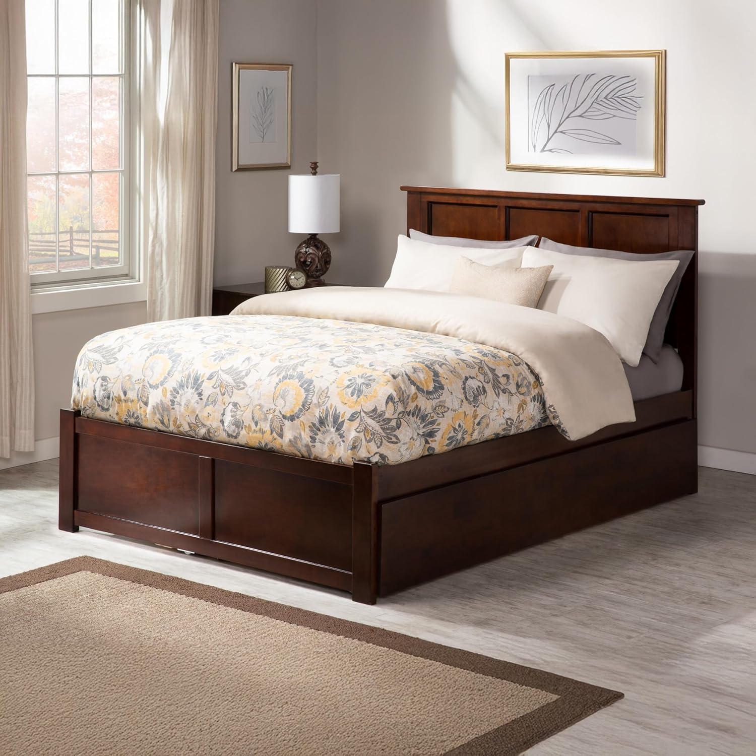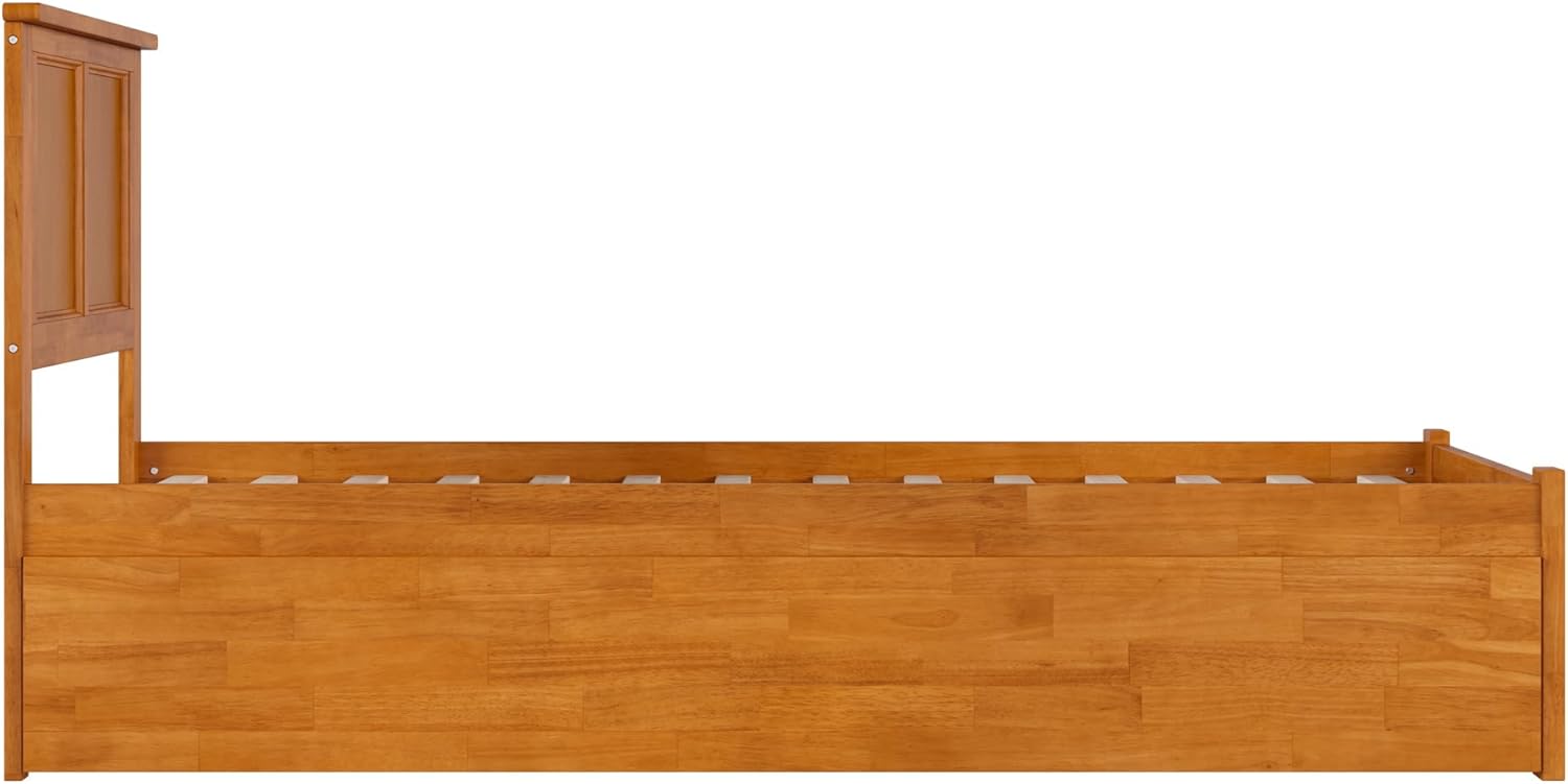 Transform Your Bedroom into a Haven of Comfort with the Madison Solid Wood Platform Bed with Footboard and Twin XL Trundle. Its timeless design, marked by clean lines, radiates enduring elegance that can be cherished for generations. The Madison Platform Bed not only offers enduring style but also remarkable versatility. Concealed beneath the bed is a convenient Twin XL trundle that smoothly rolls out from either side of the frame, providing additional sleeping space whenever you need it. Equipped with a sturdy and supportive slat kit, this bed is mattress-ready, eliminating the need for a foundation or box spring. Choose from a selection of finishes, including Espresso, White, Walnut, Grey, and Light Toffee, and select the ideal size to suit your space – whether it's Twin XL, Twin, Full, Queen, or King. Furthermore, with the included surface mount turbo charger, you can ensure all your electronics stay charged and ready for action! Elevate your bedroom with Madison Platform Bed – Where Comfort Meets Timeless Style.