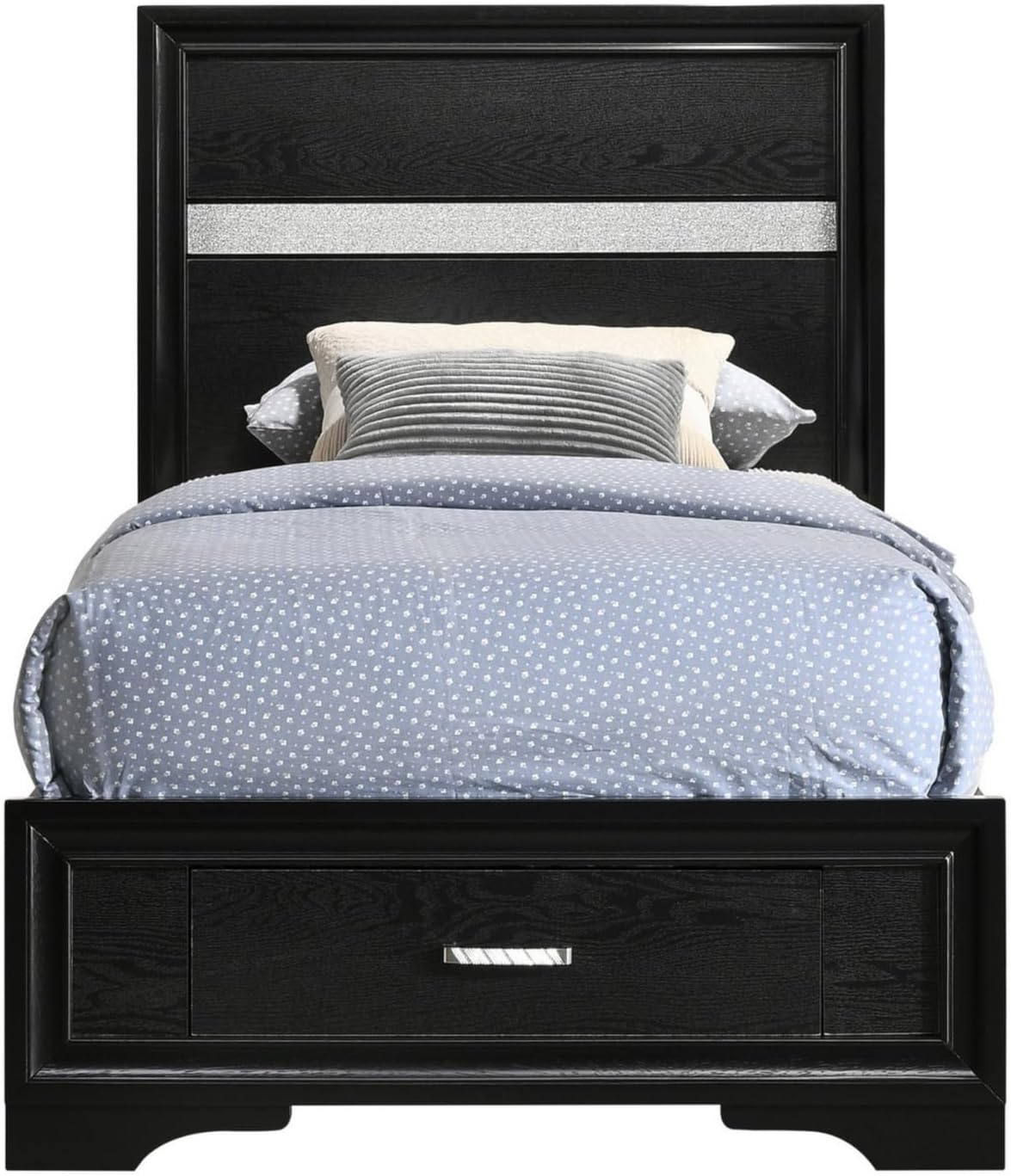 Benjara BM302770 Vino Twin Size Panel Bed with 2 Storage Drawers Acrylic Glitter & Black