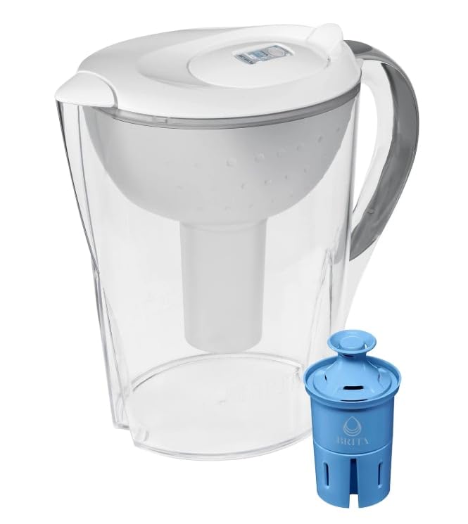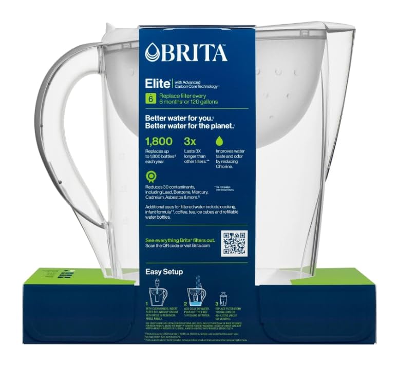 Enjoy cleaner*, great tasting tap water every day with the Brita Pacifica Water Pitcher.Drink cleaner*, great tasting tap water with this Brita 10 cup water pitcher, made without BPA, and the included Brita Elite filter. Brita Elite replacement filters have Advanced Carbon Core Technology to reduce more than 3x the contaminants of standard Brita filters**. They reduce 99% of Lead and are certified to reduce Chlorine (taste and odor), Asbestos, Mercury, Benzene, Cadmium, and more***. One Brita Elite filter can replace up to 900 16.9 oz plastic bottles and reduces more contaminants vs. PUR and ZeroWater (based on NSF/WQA certifications for Brita OB06, PUR PPF951K, and ZeroWater ZF-201 pitcher filters as of 8/17/21). The Brita Pacifica water pitcher’s flip top lid makes refilling a breeze, while the SmartLight indicator is Brita's most accurate and precise pitcher filter life indicator. This large water pitcher comes with 1 Brita Elite water filter, which should be changed every 120 gallons or about 6 months**** for best results. Start drinking healthier*****, great tasting water with Brita today. *See certifications. vs. tap water. **See certifications.***See certifications. Substances reduced may not be in all users' water. Performance data sheet available at brita.com.****Based on 120-gallon filter life and average family usage of 11 glasses per day.*****based on health contaminant reduction per WQA certifications.- This Pacifica pitcher is made without BPA, easy to fill, and can hold 10 cups of water, enough to fill 3 24-ounce reusable water bottles; Pack may vary.- Brita Pacifica pitcher is fridge friendly, features an easy-fill lid to make refills a breeze; Height 10.28"; Width 6.14"; Length/Depth 11.02"; Weight 2.24 pounds.- Water without the single-use bottle waste; by using to Brita Elite, you can replace up to 1,800 16.9 fl oz single-use plastic water bottles a year.- Reduce 99% lead, Chlorine taste and odor, Cadmium, Mercury,