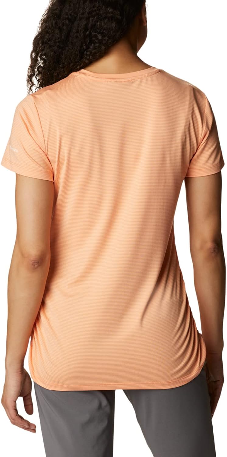 The performance tee of dreams. It's flattering, sun-shielding, and made with recycled materials — plus, it wicks away moisture and neutralizes odor for long-lasting freshness. Columbia offers this shirt in multiple colors and sizes. Extended sizing available. Active and Regular fit.