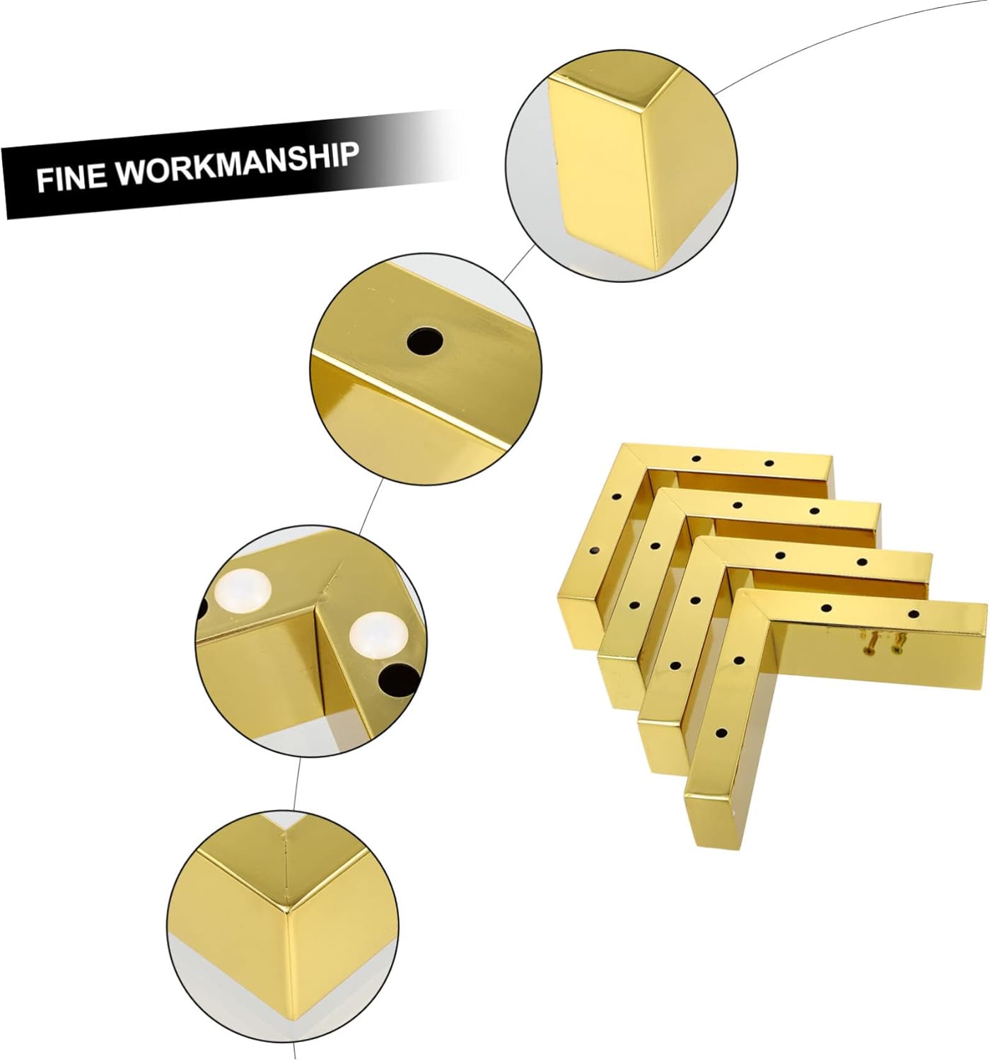 Package List 4 x Furniture Pads 16 x Screws Features -Color:Golden iron riser for bed -Material:Iron furniture feet riser -Size:5.00X2.50X14.70cm/1.97X0.98X5.78in furniture risers - Very easy to install, simply place under the legs of your bed, dresser, bookshelf, or many other pieces of furniture furniture levelers. - Excellent bearing capacity, sturdy structure, can better reduce vibration, noise and provide you satisfying using feeling fridge riser. - Our bed riser is made from sturdy and iron materials and will not easily scratch the floor furniture feet. - A wonderful solution for small bedrooms and dorm rooms with storage space to bring much more convenience to you heightening pad. - You can get more additional under bed storage space by just simply elevate the bed or your furniture frame bed heightened riser.Goods Descriptionbed lifts risers This furniture riser can be a good solution for lifting up the furniture.iron bed risers It can heighten the furniture and get more additional under bed storage space for you, proper for most kinds of furniture like bed, chair, desk, etc.furniture feet riser Using iron materials with outstanding workmanship, it is safe and durable, can be used for long period of time