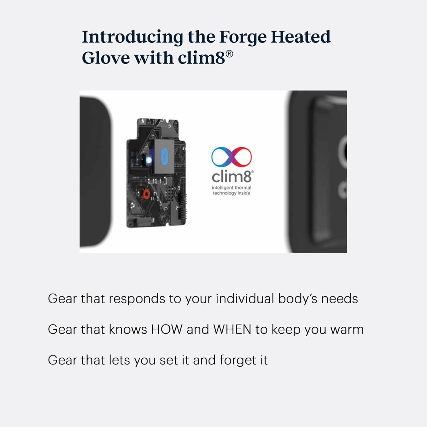 Gordini Women’s Forge Heated Gloves (3G1100) are a thermostat for your hands. Heat turns on when you’re cold and off when you’re not. Smart gloves for frozen fingers. Introducing battery-powered gloves designed to respond to fluctuations in body temperatures. clim8 heat technology monitors and warms your hands like a thermostat. Set your heated gloves to a comfortable setting using a paired smartphone app and automatically the heating system maintains a steady and comfortable balance point. Your smart gloves will power on and off as needed, preserving battery life, and maximizing comfort. Forge ahead, towards bigger, longer, and colder adventures, undaunted by incoming weather or worsening windchills. Surrounded by a durable 10K waterproof breathable ripstop shell and built with water-resistant Clutch synthetic leather palms, thumb and trim, the Forge stands up to the toughest environments. A waterproof, windproof, breathable Gore-Tex insert keeps hands warm and dry while the moisture-wicking lining keeps hands comfortable even if you break a sweat. The gauntlet cuff is made to fit over the jacket, keeping the cold out and the heat in. The Forge features a drawcord closure, wrist strap and built-in leash, which means you won’t drop your gloves on the lift. The Forge heated gloves come with 2 batteries, one for each glove and one charger. Head out when the temps drop in the Gordini Forge Heated Glove.
