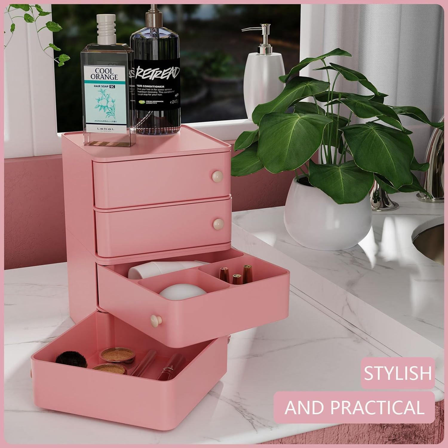 Are you looking for the ideal desktop storage box that can store your messy desktop gadgets and office supplies, teaching supplies, makeup brushes, etc. Space-saving makeup organizer contains your daily makeup essentials all in one location and conveniently at your fingertips! This organizer has ample space for Tall bottle skincare products and small makeup palettes. The clear design looks great on any vanity or bathroom counter. It suits your various storage needs: Makeup Organizer, Vanity Organizer, Desk Organizer, Bathroom Organizer, etc! And you also can put it by the mirror, on your bedtable or even under the sink. Smooth Drawer, Your favorite makeup drawers slide easily. Drawers are perfect for storing lipsticks, foundations, blushes, eye shadows, primers, powders, and much more. Makeup organizer is round corners and the edges are smoothly polished, and the surface has no burrs. It will not scratch your body. Specification: Material: Plastic Color: Pink Size: Approximate Large(L*W*H) 10.1*6.9*4.8 inches, Medium(L*W*H) 6.8 x 6.8 x 4.8 inch Package Included: 2 x Makeup Organizer