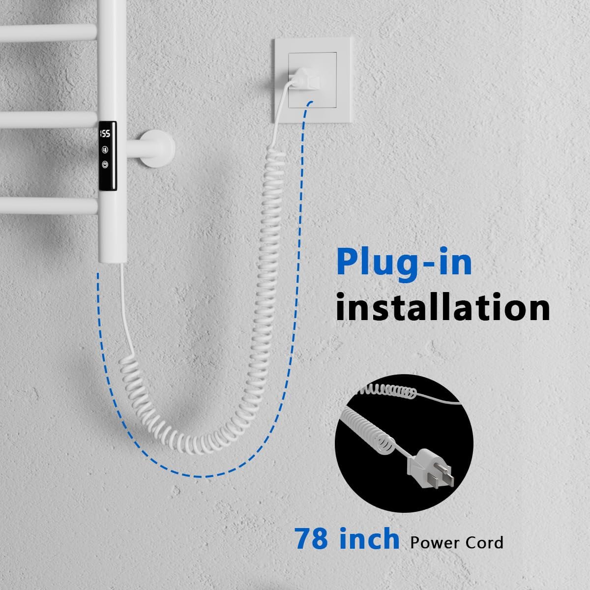QAOYEDE Towel Warmer for Bathroom with Timer, Plug-in Electric Towel Warmer Rack with Fahrenheit Temperature Control, Wall Mounted 12 Bars Heated Towel Drying Rack White