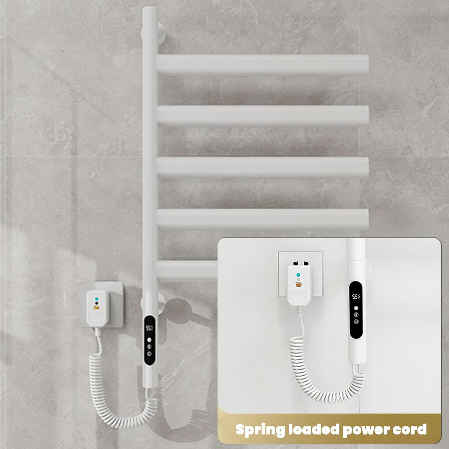 This smart heated towel rack can effectively solve your wet towel problem.Effectively dry, keep warm you and your family.Product name: Smart rotating Electric Towel WarmerColor: black/white/greyMaterial: Stainless steelFunction: 180° rotation, digital display of temperature and time, touch temperature adjustment, timer offTiming method: Touch the digital display to turn off timing (1~8 hours)Voltage: 110V-220VTemperature: 113-158°F/45-70°CInstallation method: drilling/no drilling (applicable to smooth ceramic tiles, glass walls, etc.)Power supply mode: plug-inScope of application: bathroom, kitchen, balcony, toilet, swimming pool, hotel and other places, simple design, multi-functional usePackage Contents:1*Towel warmer1 * Installation accessoriesNotes:1. Due to manual measurement, the size error is 1-3cm. Errors may occur, please refer to the actual product.2. Due to shooting and environmental reasons, the color is subject to the actual product.