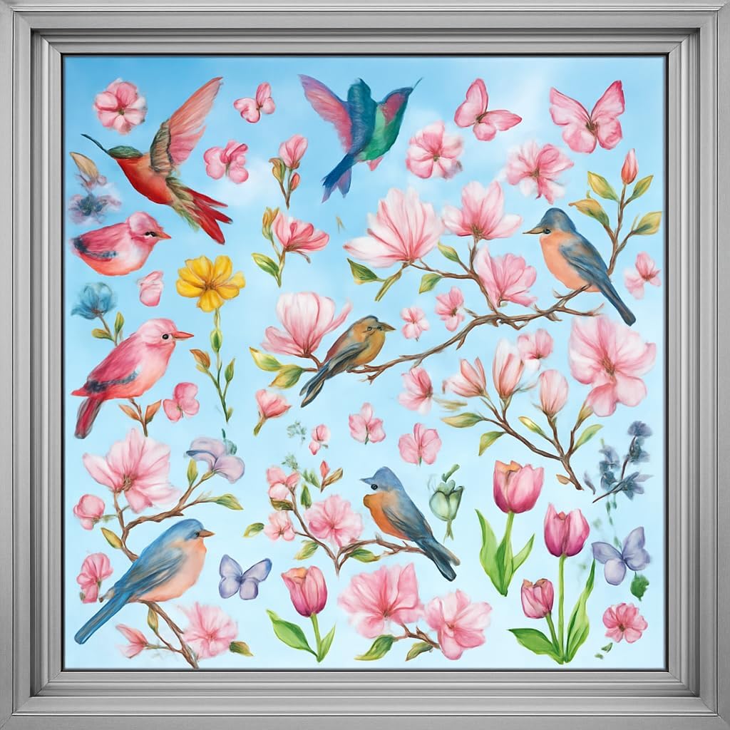 • 1.69 PCS Spring & Summer Window Decals:Bring vibrant seasonal charm to your home or office with 69 colorful bird, butterfly, hummingbird, and floral decals on 9 sheets—perfect for windows, sliding doors, mirrors, and more.