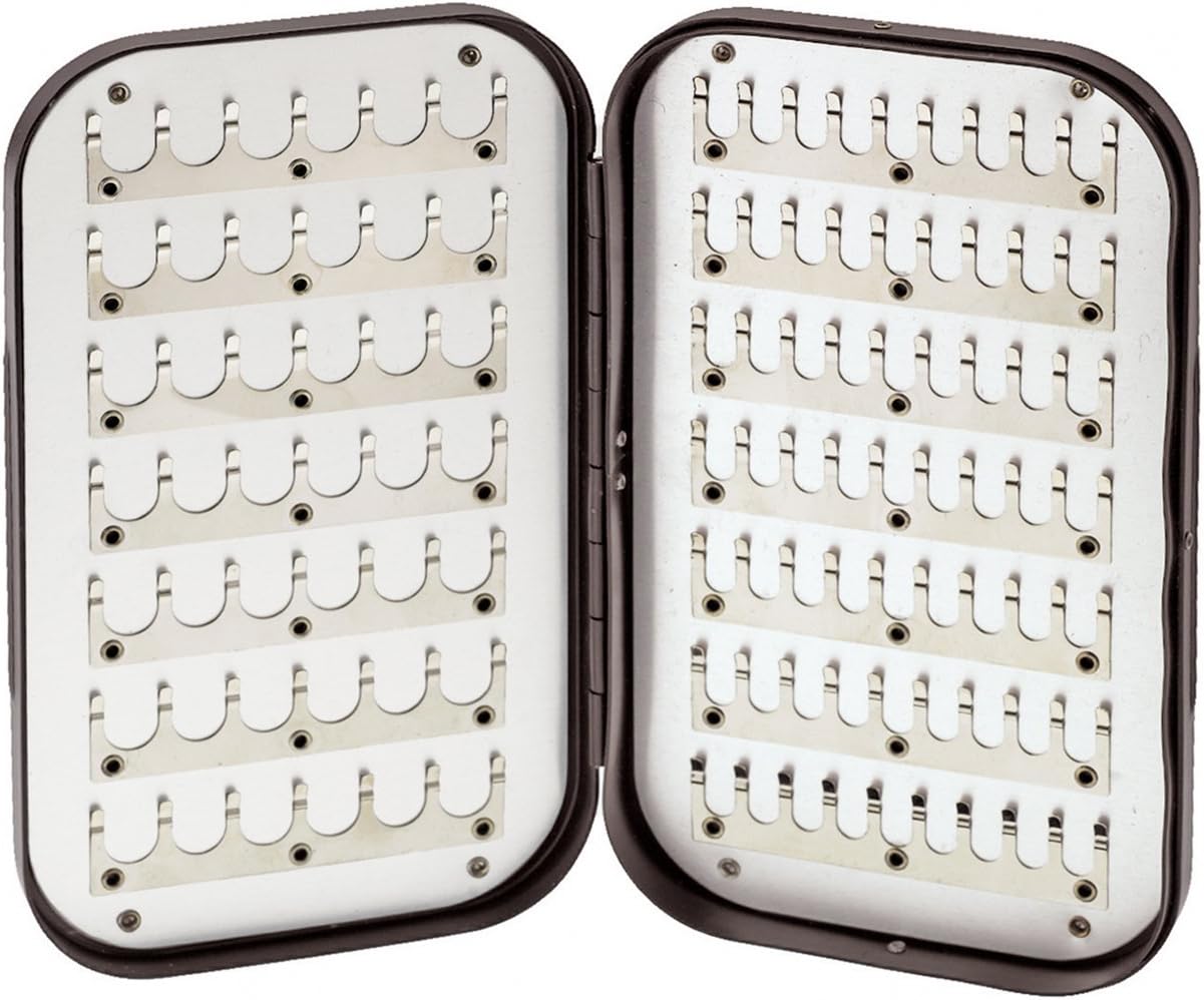 Re-issue Whitley Ultra Thin Fly Box Series Based on the idea of Timco who has been dealing with Whittley for a long time, the ultra-thin aluminum fly box was finally realized by REC who currently has whit tray, the Whitley Slimline series. The ultra-thin box was reintroduced in the 21st century, which was not left in the Old Whitley factory in England, and now only available in museums and vintage collectors. Only 0.65" (16.5mm) thickness is 57% of the conventional (1.15" = 29mm) Stylish rolled wet flies on both sides In addition to the clip type, the flat form and EG grip foam are also available. 6" 3.5" 0.65" (152 89 16.5 mm)
