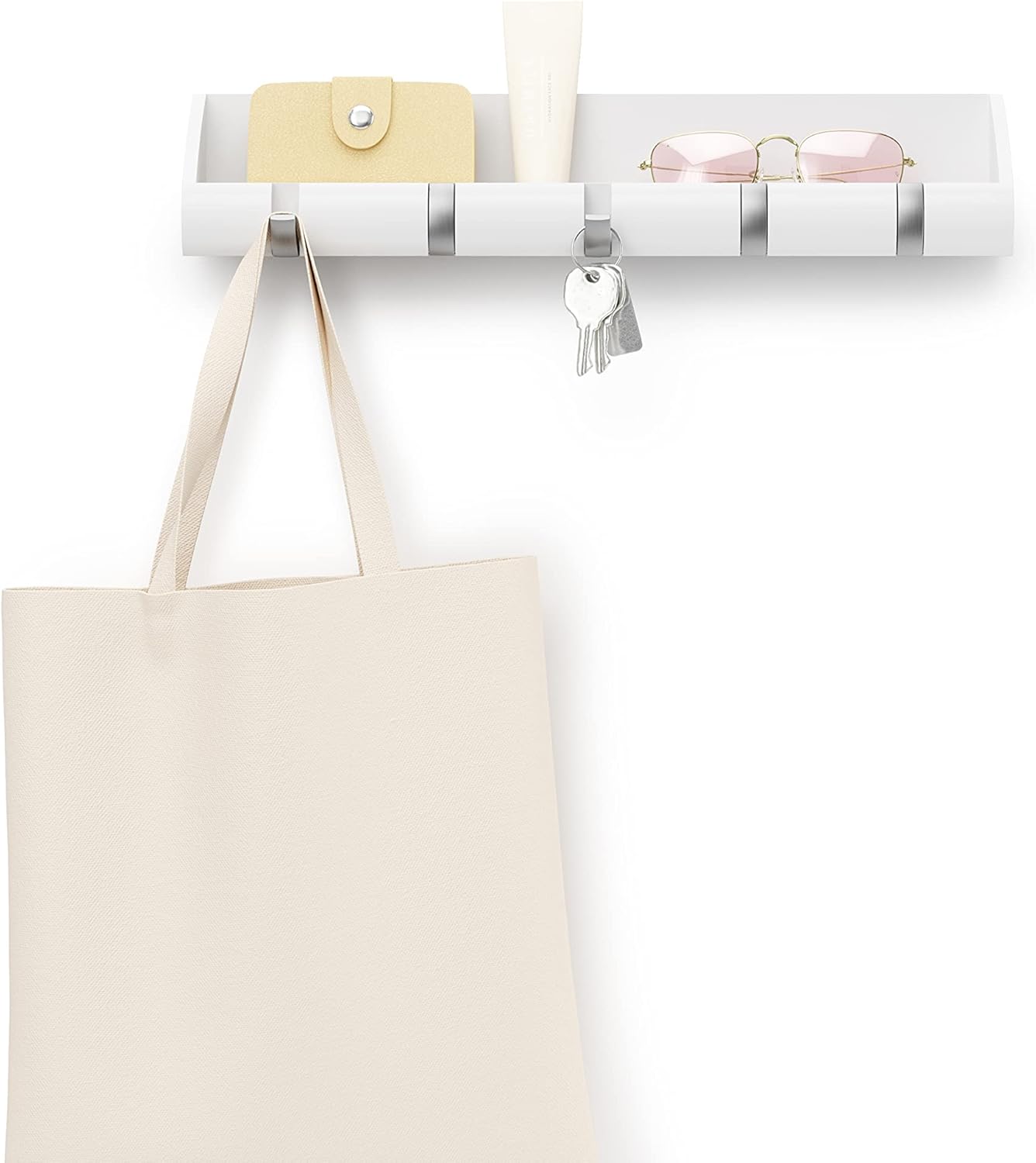 Keep your everyday items easily accessible before heading out the door with Umbra Cubby Entryway Organizer. With five flip-down hooks, and a large storage compartment for items like your keys, wallet, mail and more, this entryway organizer is sleek in size with a large capacity.